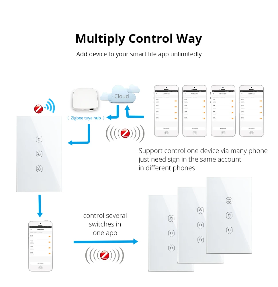 Zemismart Tuya Zigbee переключатель без нейтрального США прерыватель умный жизнь дистанционное управление Alexa Google Домашний Светильник переключатели 100-240 В