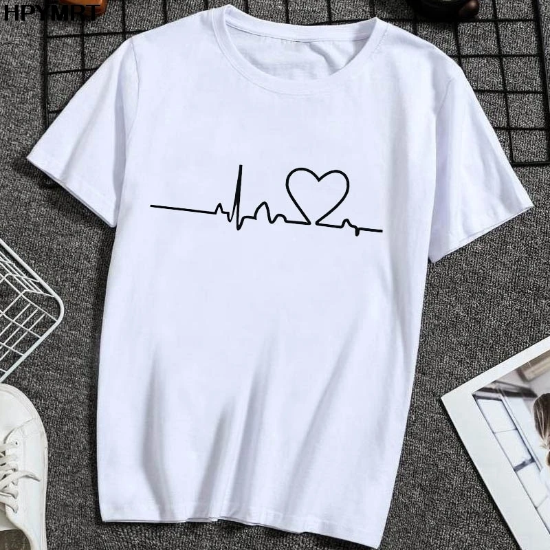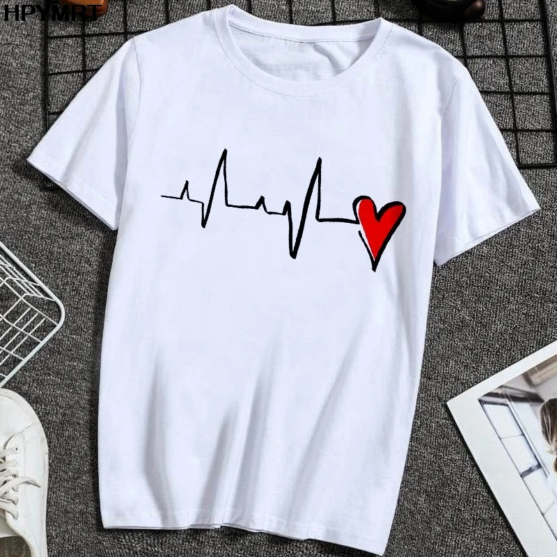 Женская футболка с принтом сердца, тонкая белая футболка с сердечка...