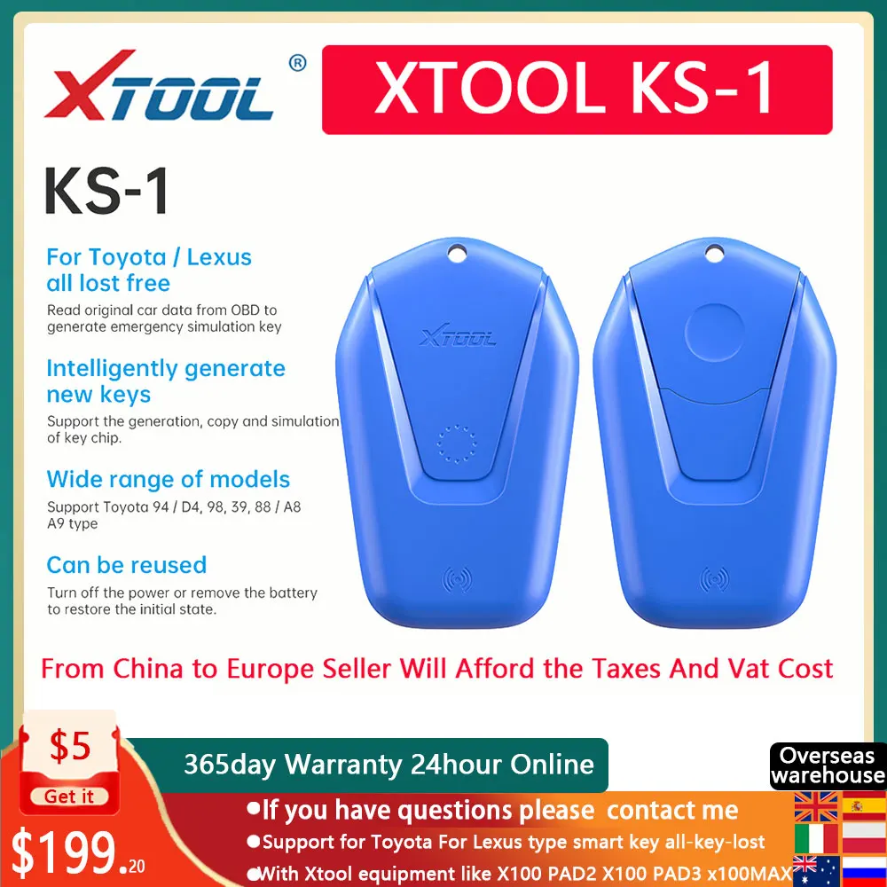 Эмулятор OBD2 New XTOOL KS-1 KS01 для PS90 X100 PAD2 PAD3 PAD Elite A80 All Lost via OBD2 KC100, подходит для Toyota Smart Key