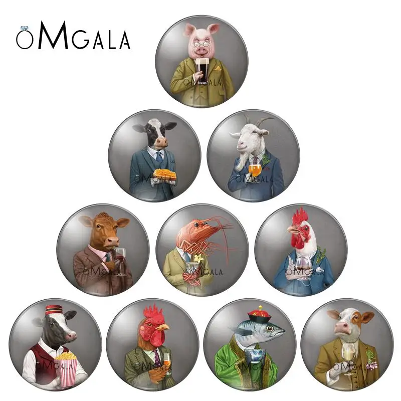 Модный костюм Свинья овечка корова животные 10 шт. смешанный 12 мм18 мм20 мм25 мм Круглый Фото демонстрационное стекло кабошон с плоской задней поверхностью фурнитура для изготовления