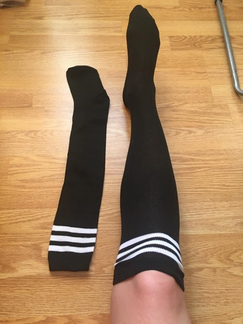 nu, na 62kg skoro male, museji se nechat tesne nad kolena, jinak se nepekne zariznou. Ale kvalitni, pekne, opravdu doporucuji. Very recommended, nice, high quality socks.