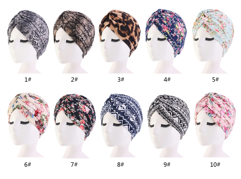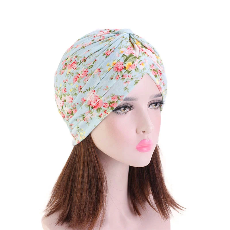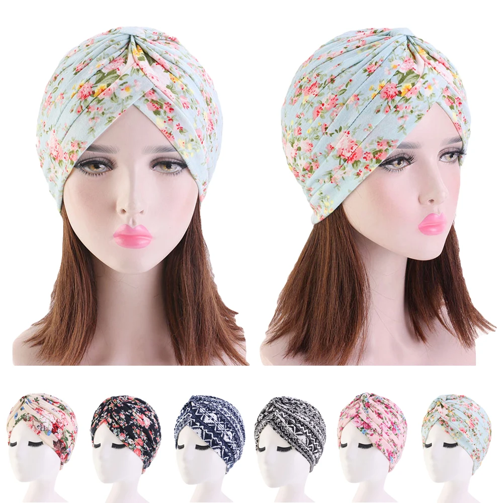 Женский индийский тюрбан 10 цветов, шапки с цветочным принтом для женщин, модная плиссированная шапка для выпадения волос, 2020