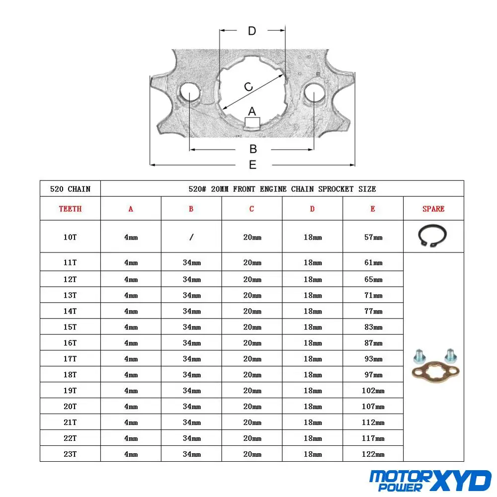 Цепь 520 #20 мм, 10T, 11T, 12T, 13T, 14T, 15T, 16T, 17T, 18T, 19T, 20T, 21T, 22T, 23T, передняя Звездочка двигателя для ATV Quad Dirt велосипед Мотоцикл