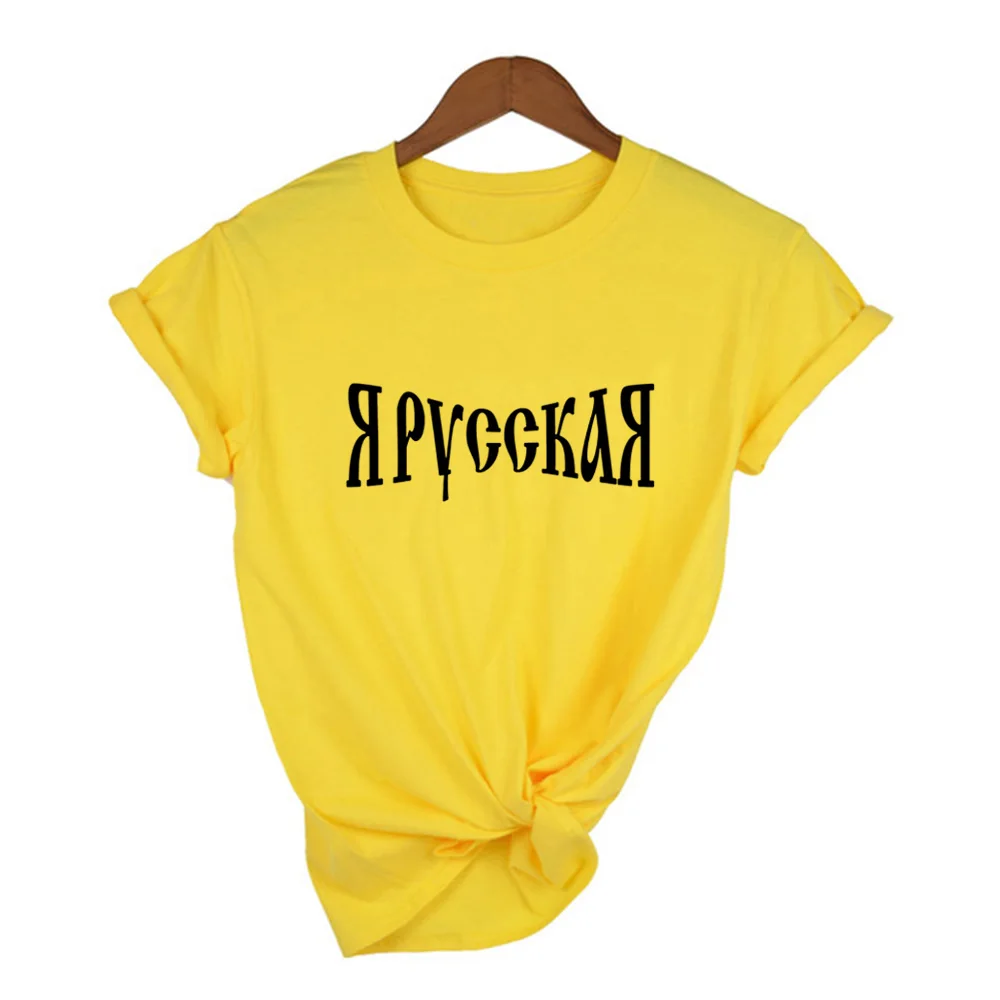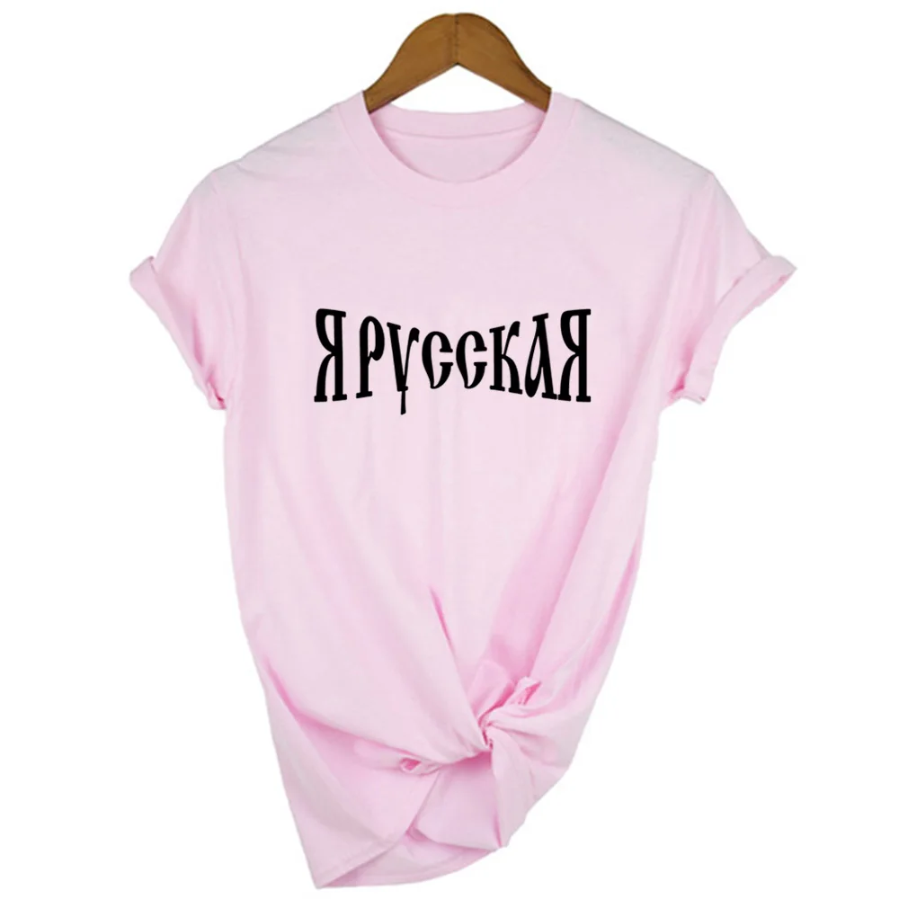 Женская футболка с принтом в стиле Харадзюку, летняя футболка с рус...
