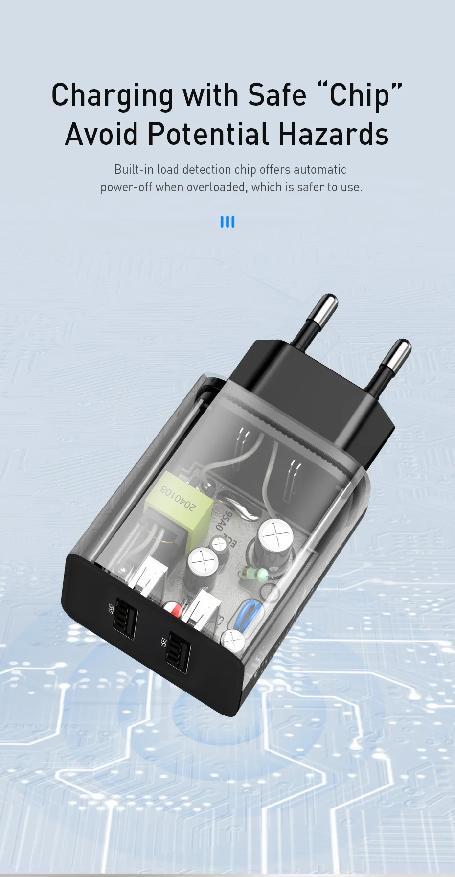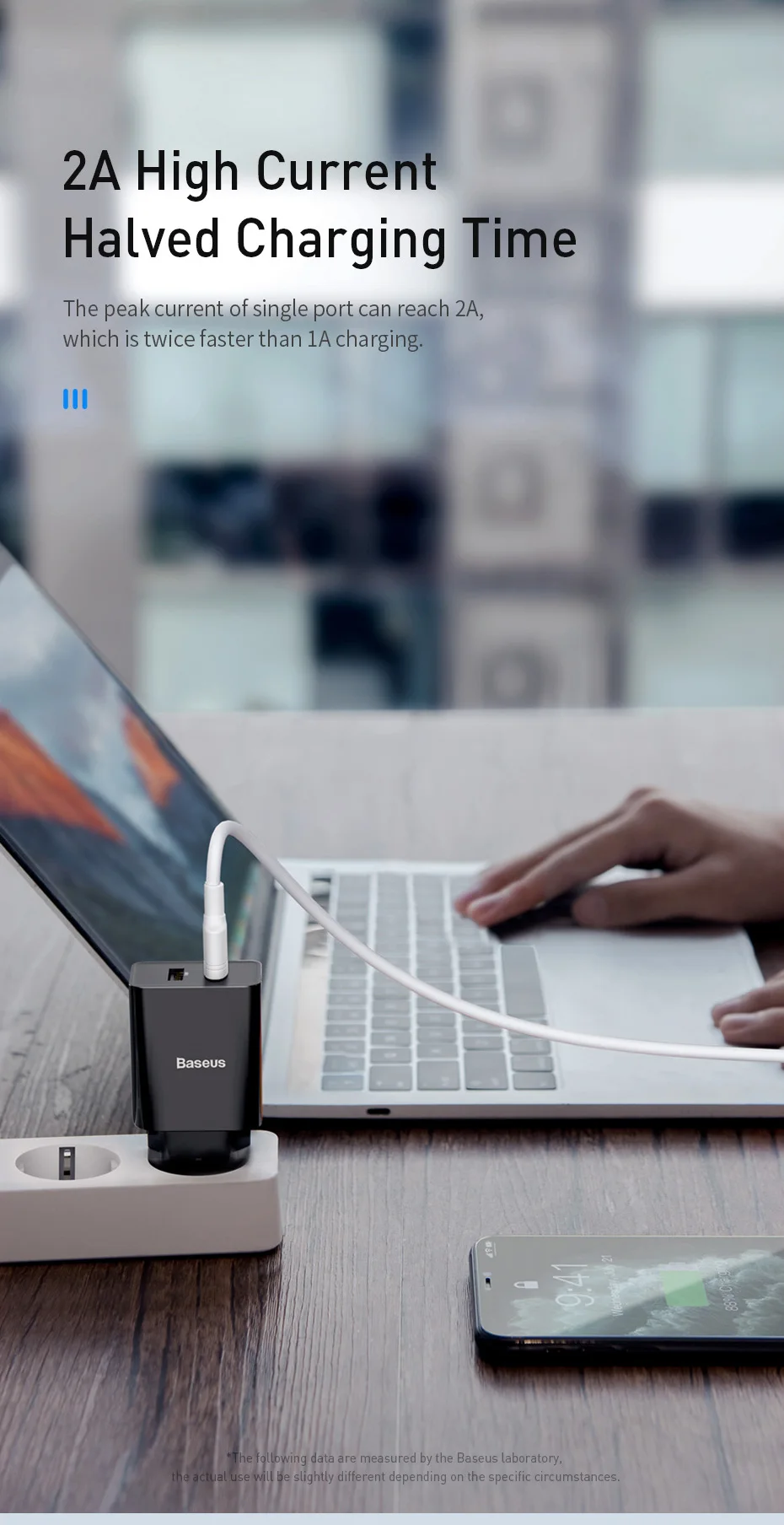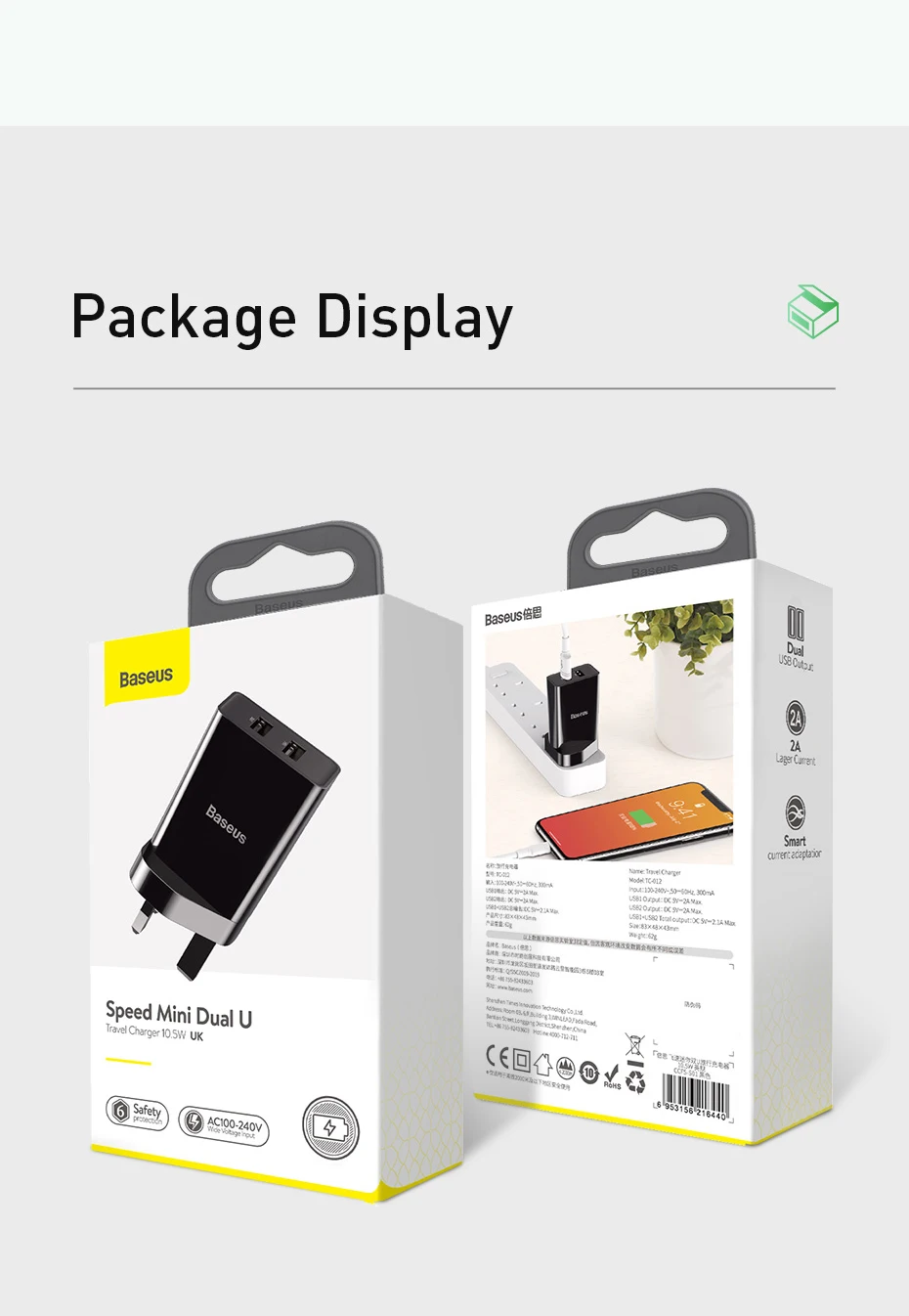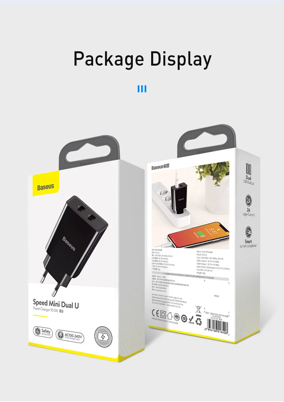 Зарядное устройство Baseus с двумя USB-портами, 2 А, портативное, для iP, Huawei, Xiaomi