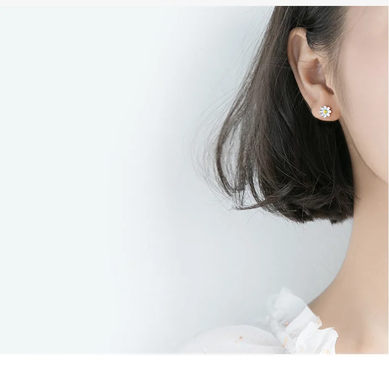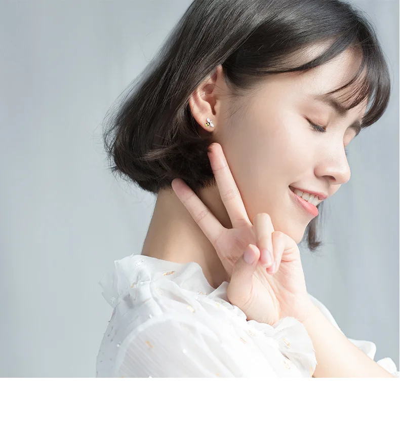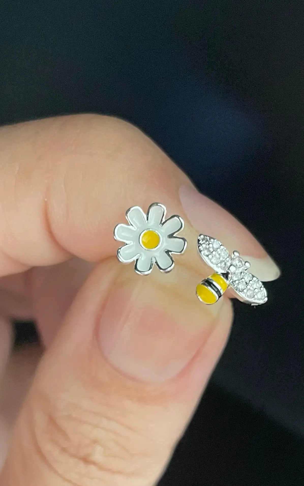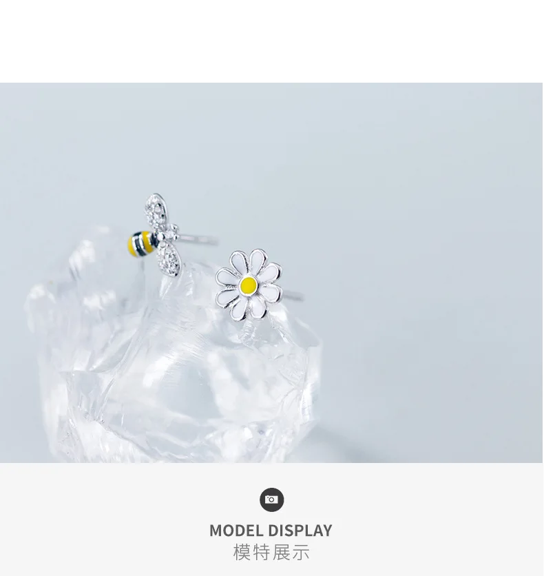 Асимметричные серьги-гвоздики из серебра 925 пробы, с цветком, Пчелкой и маргариткой