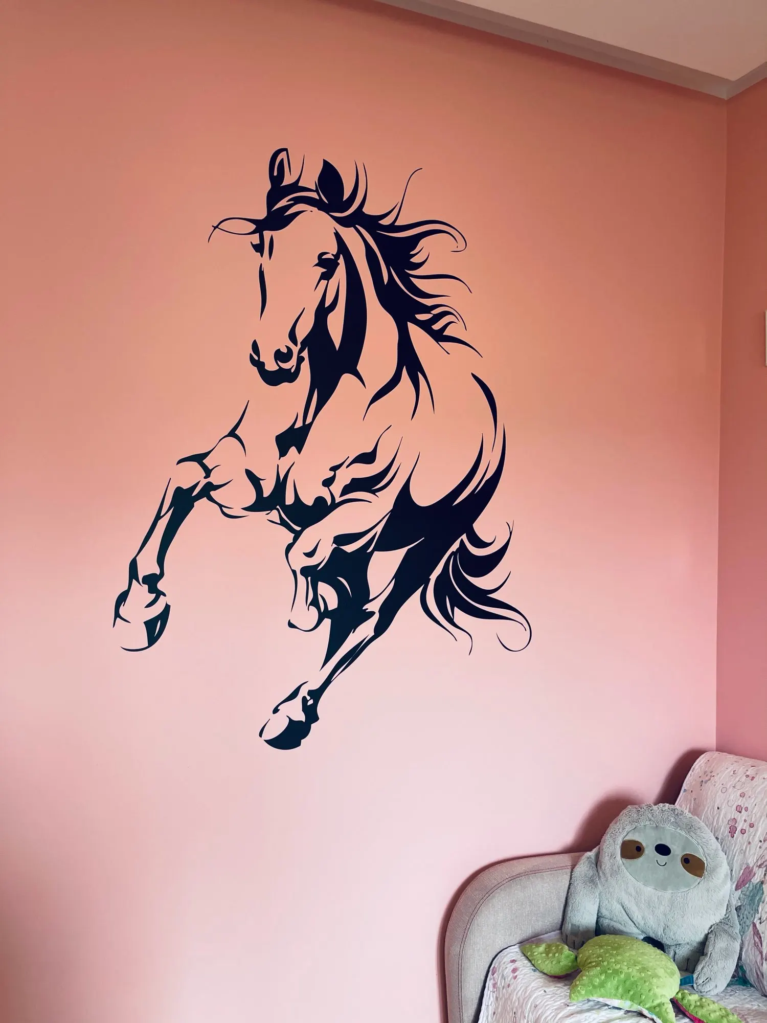 Черный скакающийся стикер на стену лошадь, виниловые обои для прыжк...