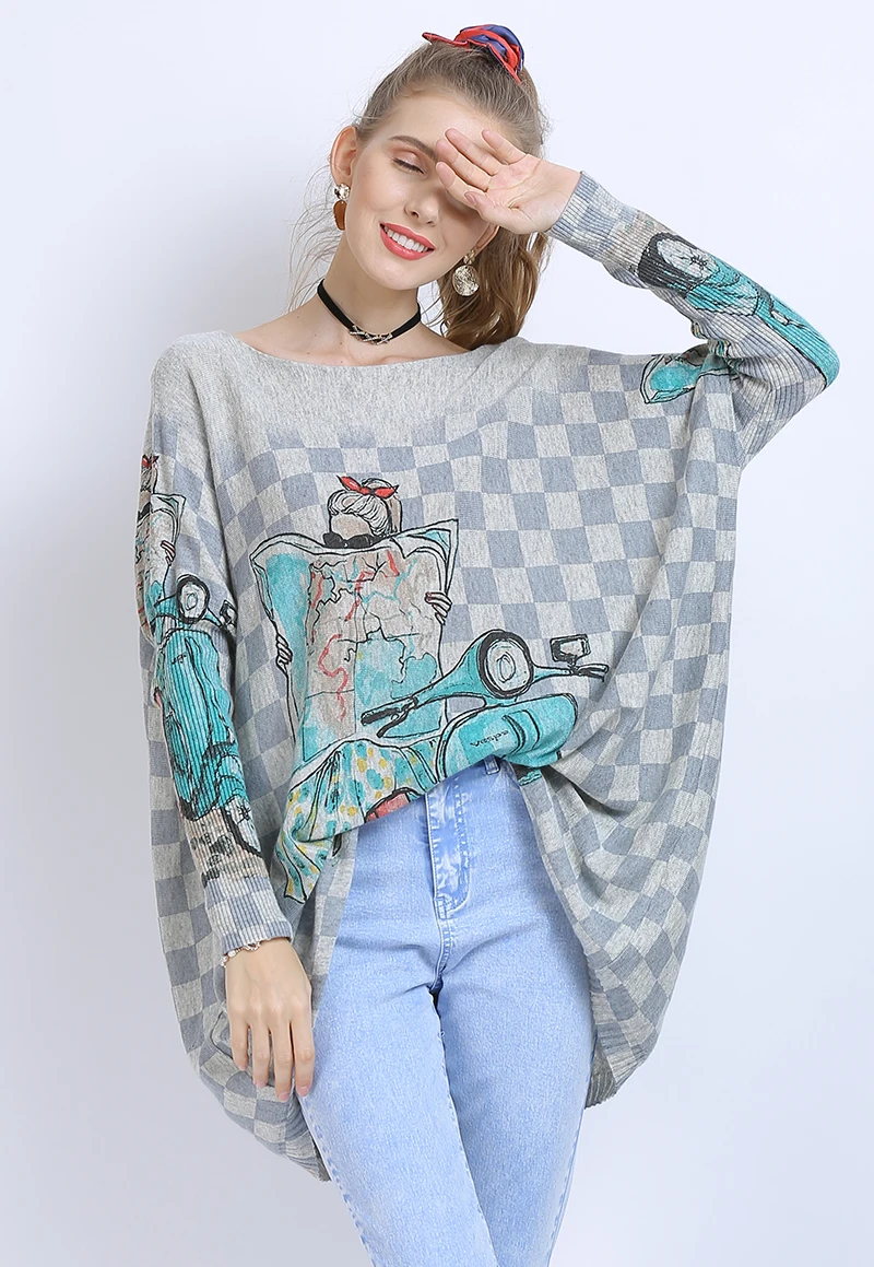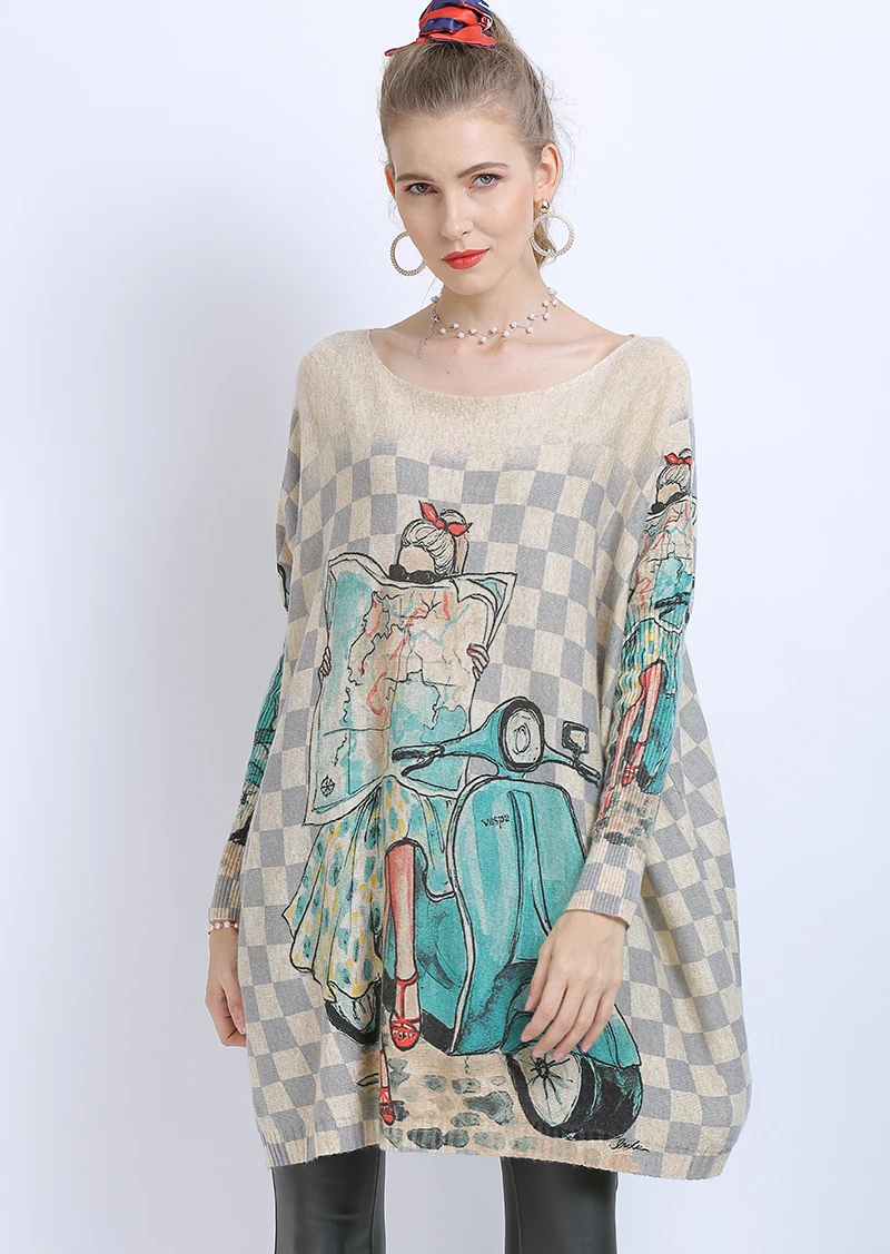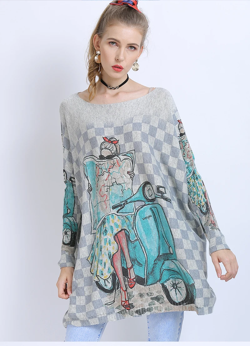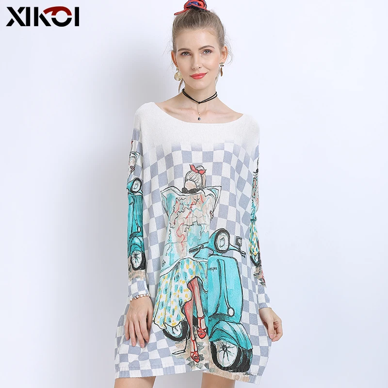 Женский шерстяной свитер XIKOI, зимний длинный пуловер с принтом, повседневный вязаный джемпер