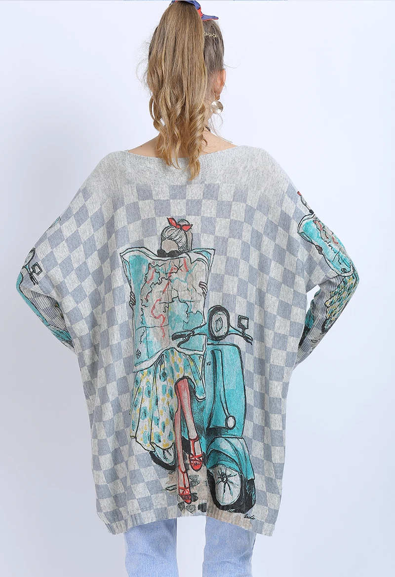 Очень милый свитер. Красивое изображение. Стирать наизнанку. Широкая посадка. Доволен им