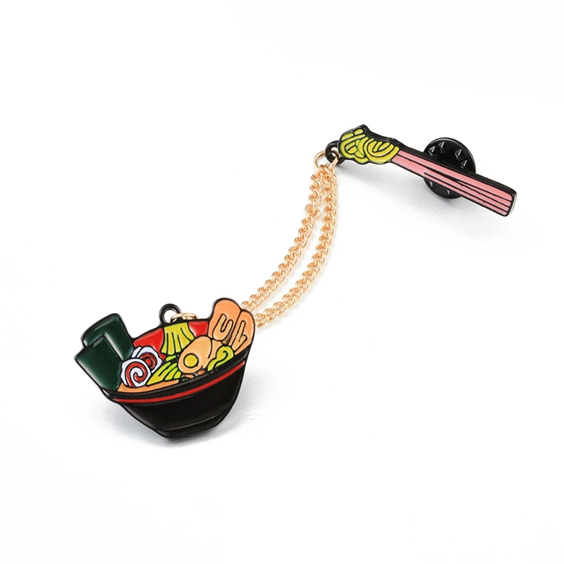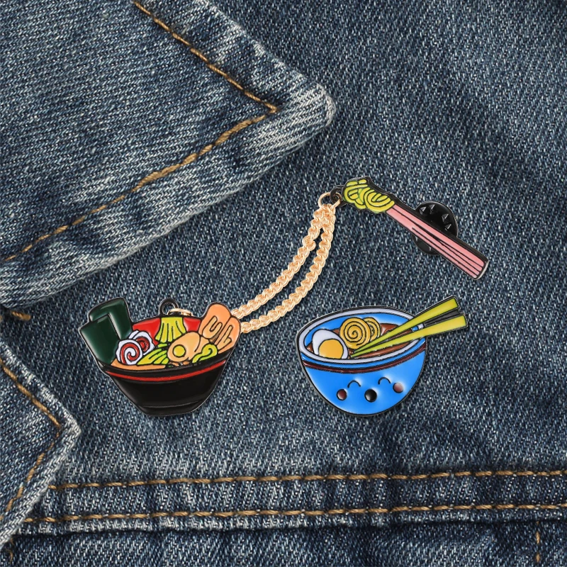 2 шт.компл. Kawaii рамен эмалированная булавка японская лапша миска палочки Броши рюкзак куртки этикетка значки ювелирные изделия подарок