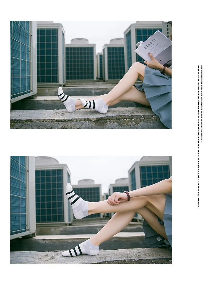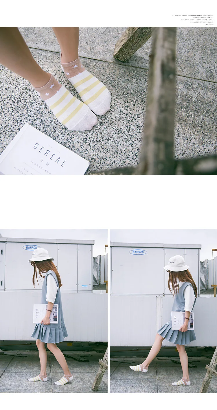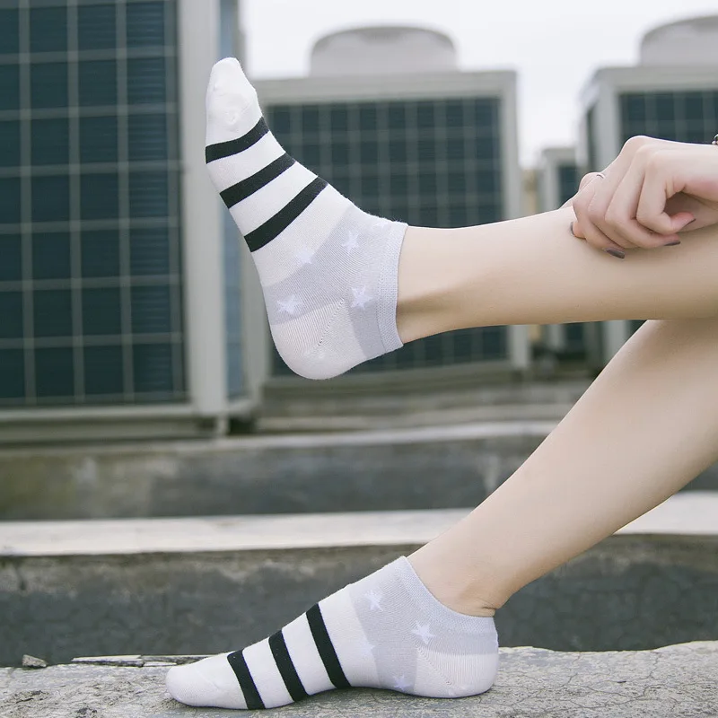 Хлопковые носки-лодочки, женские носки в полоску со звездами, низки...