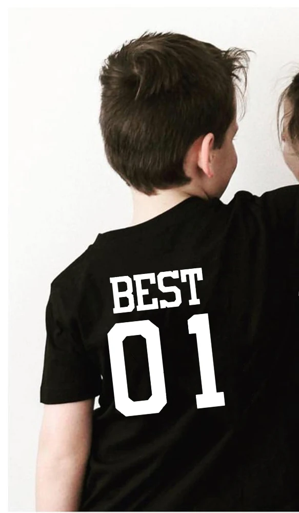 Повседневная Детская футболка с надписью «Best Friend»; Одинаковые комплекты для семьи; Футболки; Детская футболка с короткими рукавами и принтом сзади; Топы для братьев