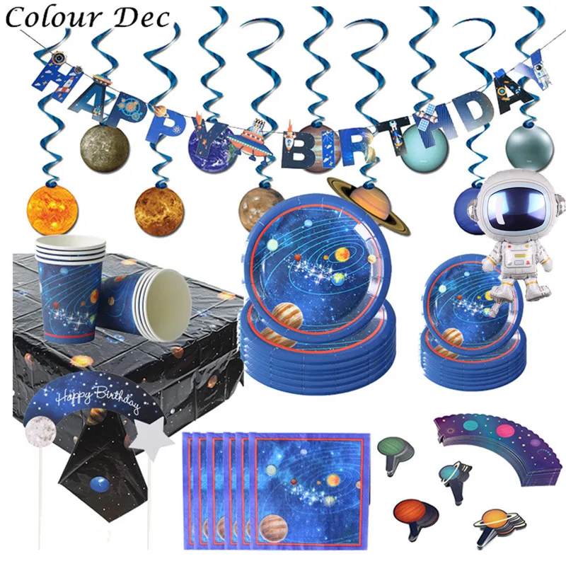 Горячие Космические Планеты вечерние одноразовые столовые приборы для дня рождения вечерние детские одноразовые бумажные тарелки чашки астронавта вечерние принадлежности