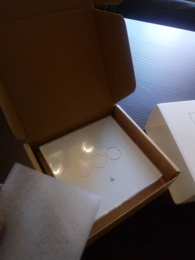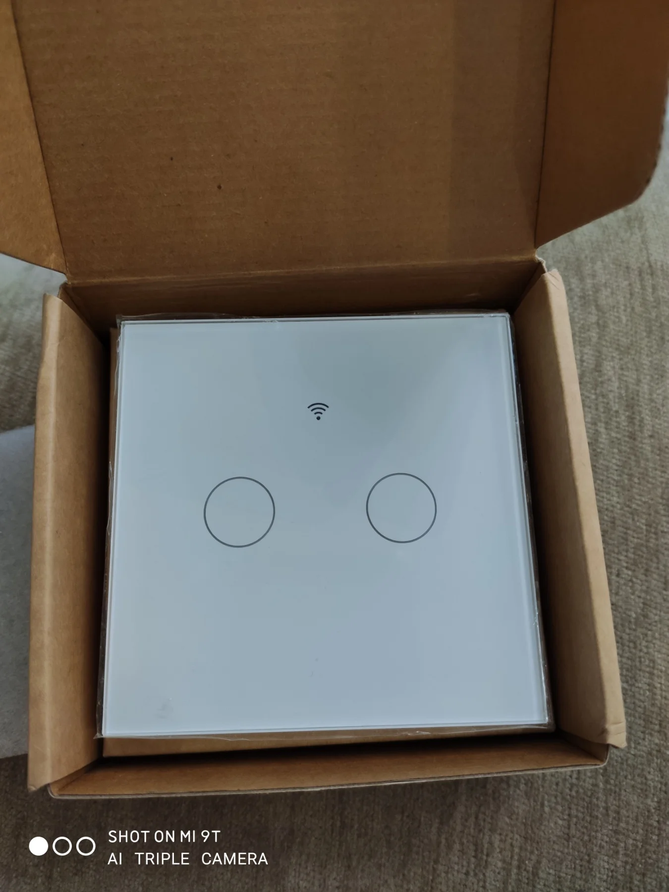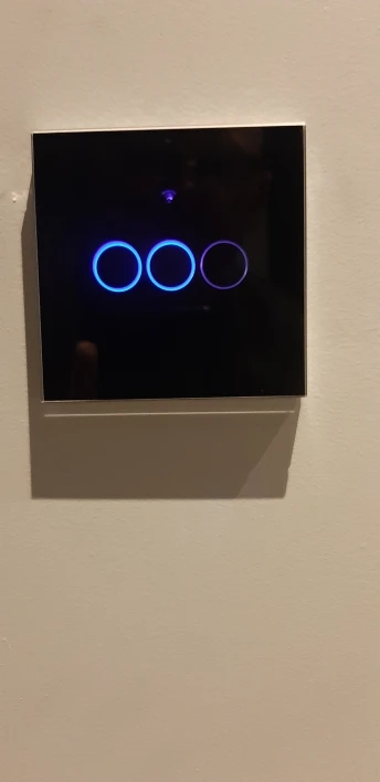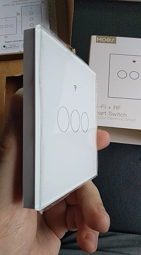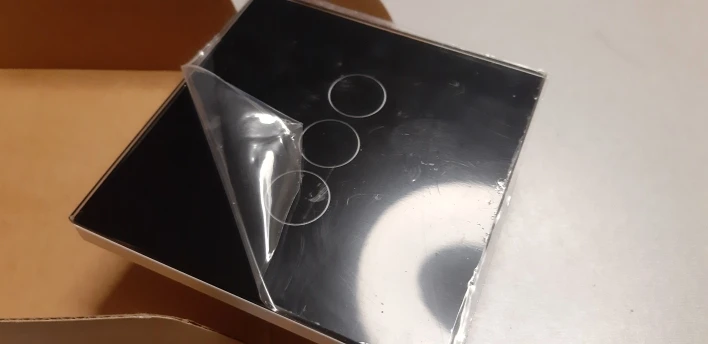 Все пришло в целости, кнопки крягляшки больше диаметром чем у других производителей - поэтому немного выбивается из стиля (закупал остальные выключатели в других местах). значок подключения к вайфаю не подсвечивается - просто имитация на стекле - и тоже неоправданно большим сделали значок - можно было и без него обойтись.