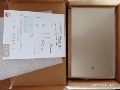 Хороший продукт, прибыл в месяц, быстрая доставка, так как он прибыл до того, как другие продукты s запрашивали раньше. Купите у нас версию для прямоугольных коробок, и она хорошо работает, только сомнения, что я остался, это светодиодный индикатор (значок wifi), который я думал включится, но нет, они просто мигают переключатели до тех пор, пока он не установлен, хорошо работает с приложением и Google asist. Настоятельно рекомендуется, эстетически элегантно. Я куплю для остальной части дома.