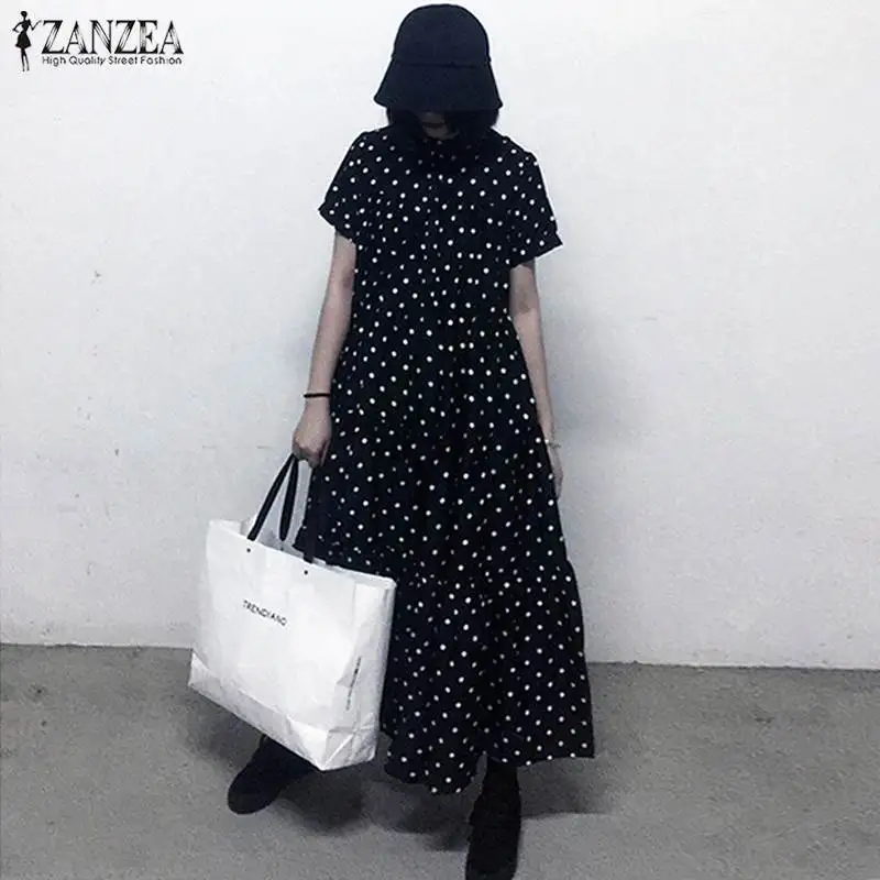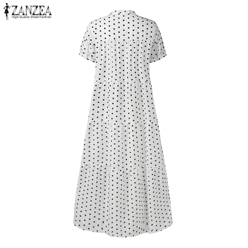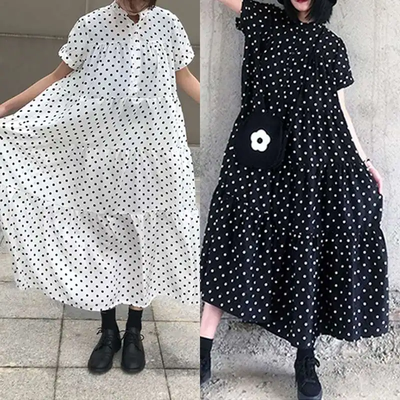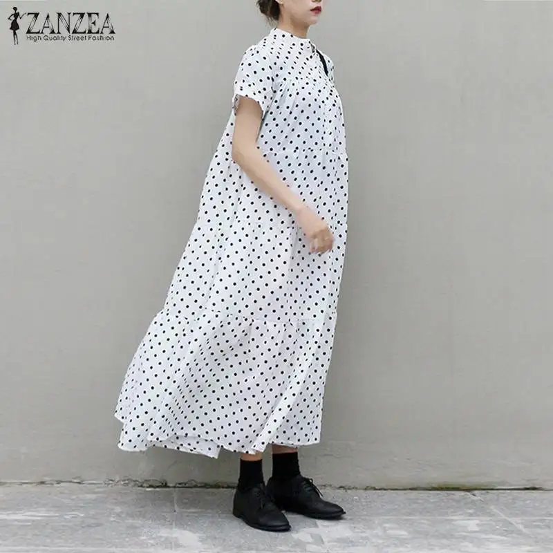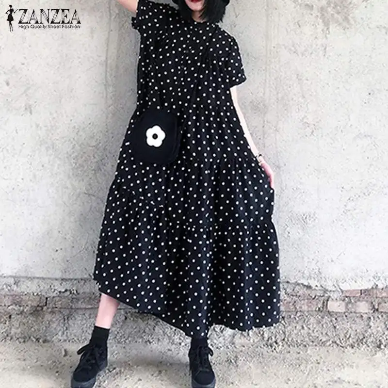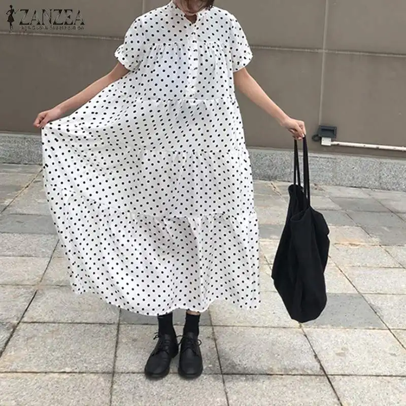 Женский сарафан с принтом, Макси-платье в горошек, Повседневная Туника с коротким рукавом, большие размеры, халат с оборками