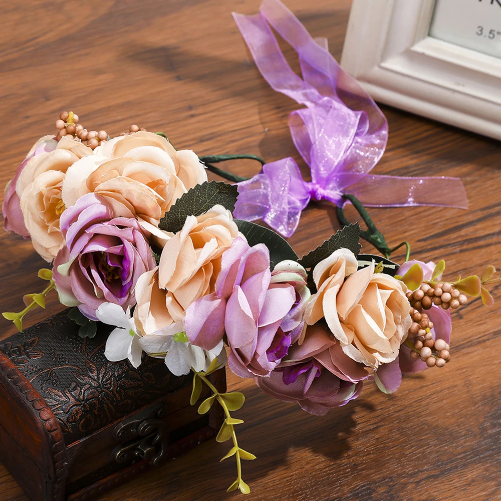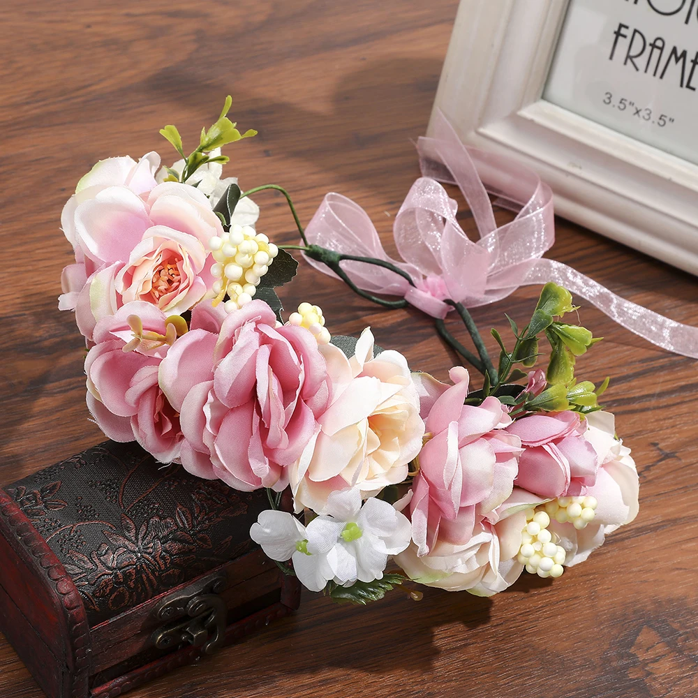 Свадебная Цветочная Корона Haimeikang, свадебная повязка на голову, цветочный венок для волос, лента, головной убор для беременных девушек, аксессуары для волос для женщин