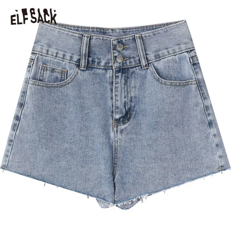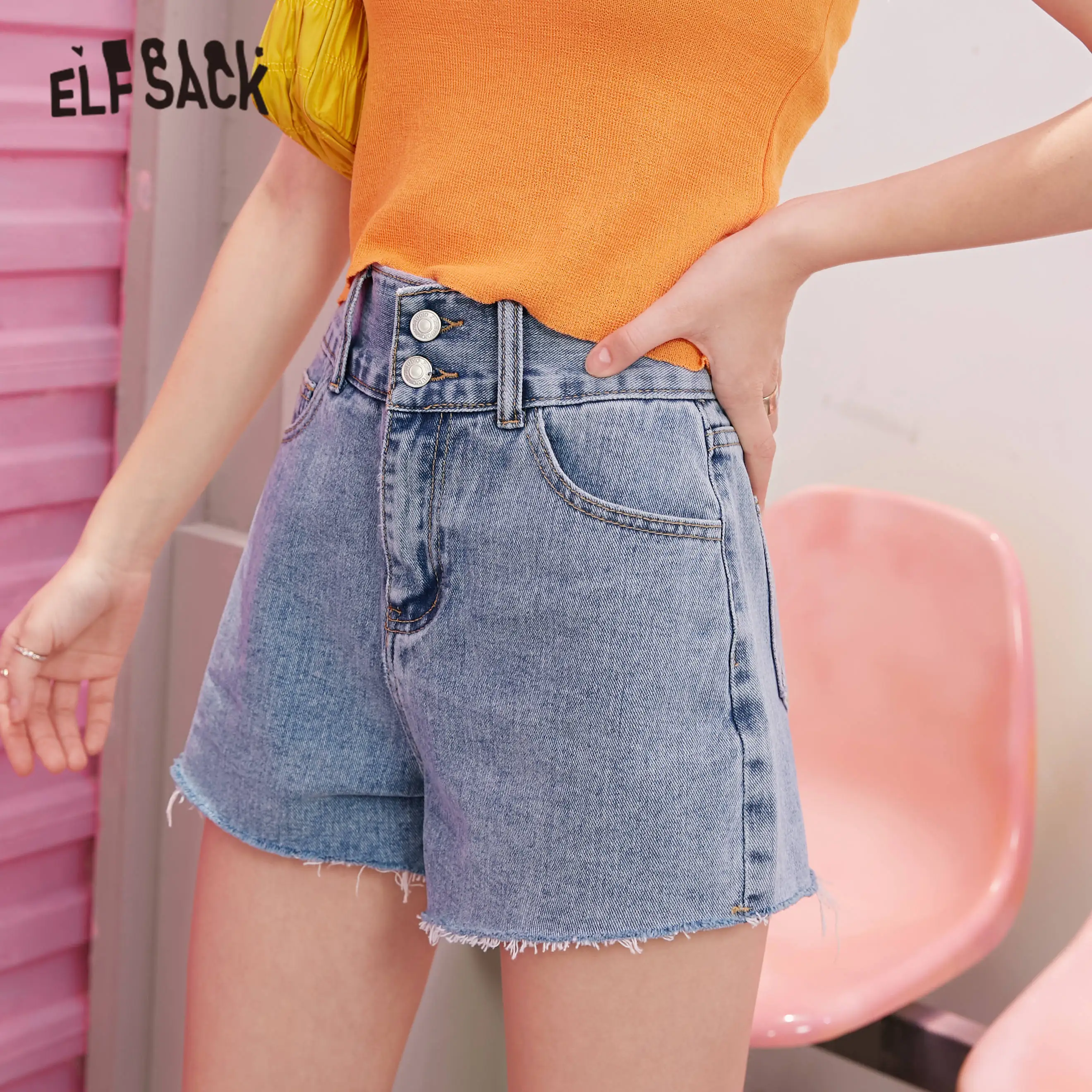 Женские джинсовые шорты с высокой талией ELFSACK, синие однотонные минималистичные шорты с высокой талией, лето 2020, Женские Повседневные базовые шорты из чистой потертой ткани в Корейском стиле