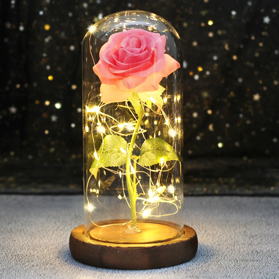 Новый светильник, светодиодные цветы с розовым хрустальным куполом, черный декоративный свадебный день Святого Валентина, подарок на день матери