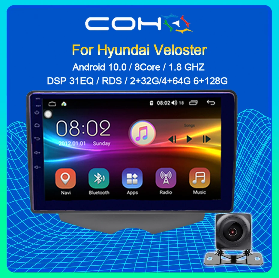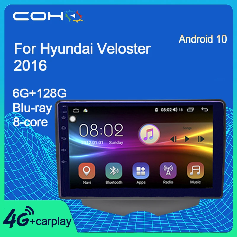 Автомобильный мультимедийный плеер COHO для Hyundai Veloster, Dvd, Gps, Авторадио, Android 10,0, Восьмиядерный процессор, 6 + 128 ГБ