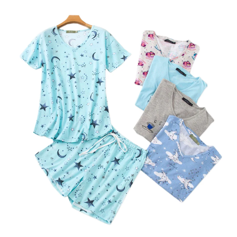 Летние короткие пижамные комплекты, Женская Корейская Повседневная Милая Пижама с короткими рукавами и героями мультфильмов, женские пижамные комплекты, шорты, пижамы