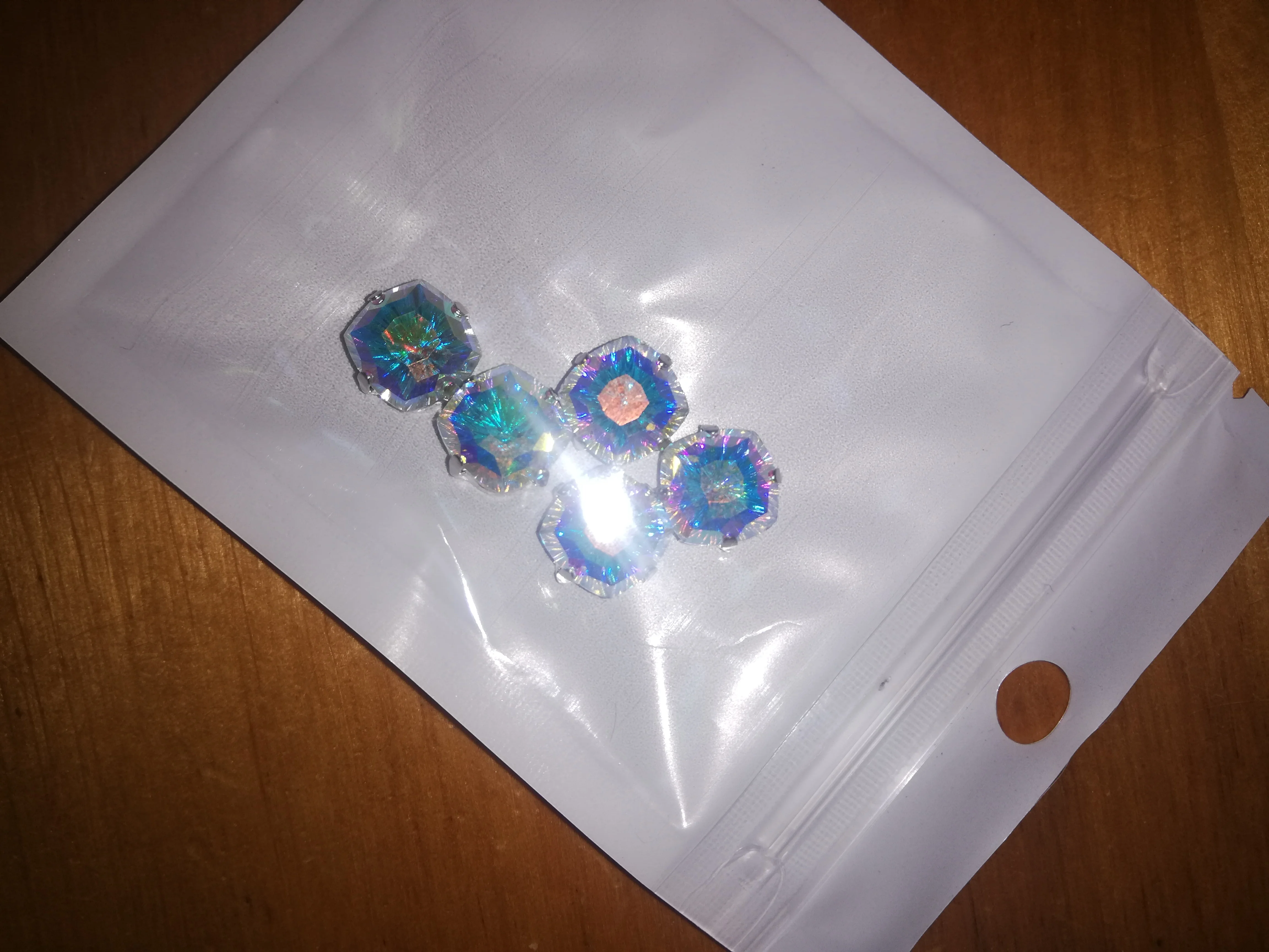 Кристаллы не очень понравились. Выглядят дёшево. Синие кристаллы не сияют, прозрачные выглядят лучше