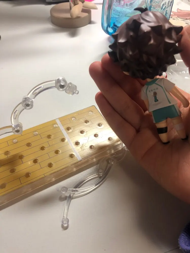Итак, что могу сказать. Фигурка гуд, непрокрашено местами, но не страшно, положили две одинаковых руки (в смысле две левых) не могу полностью собрать позу. Хлипенький подъёмник, Кенма вечно выпадает. Непонятно как вставлять кота или мяч. В целом могло быть лучше, но на твёрдую четверочку. Пришло в январе, через два месяца после заказа.