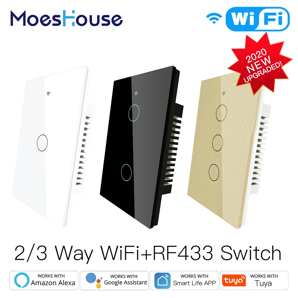WiFi настенный сенсорный смарт-светильник, переключатель RF беспроводной смарт-жизни/Tuya Muilti-Control Association App релейный статус и светильник подсветки выключение дистанционного управления работает с Alexa, google Home 1/2/3 банды белый/черный/золотой Изготовитель: MoesHouse