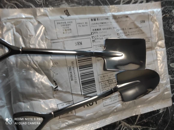 Оно, конечно - простенькая штамповка, но выглядит прикольно. По размерам ближе к десертной ложке. Взял несколько комплектов в качестве подарков друзьям. Посылка доехала мегьше, чем за две недели.