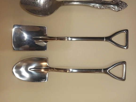 Необычные ложки, можно в подарок строителям дарить. Единственное что размер большоват, думал как чайные размером, а они ближе к десертным