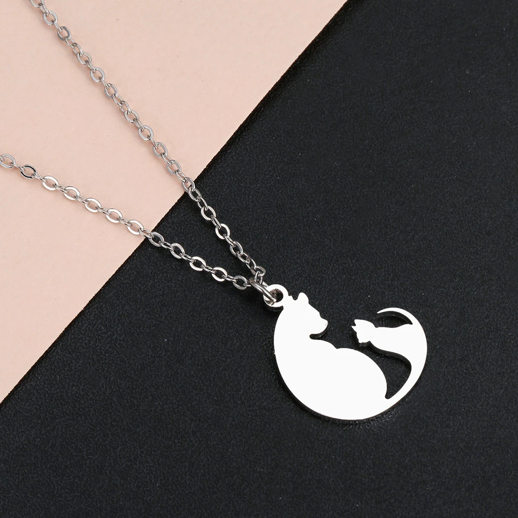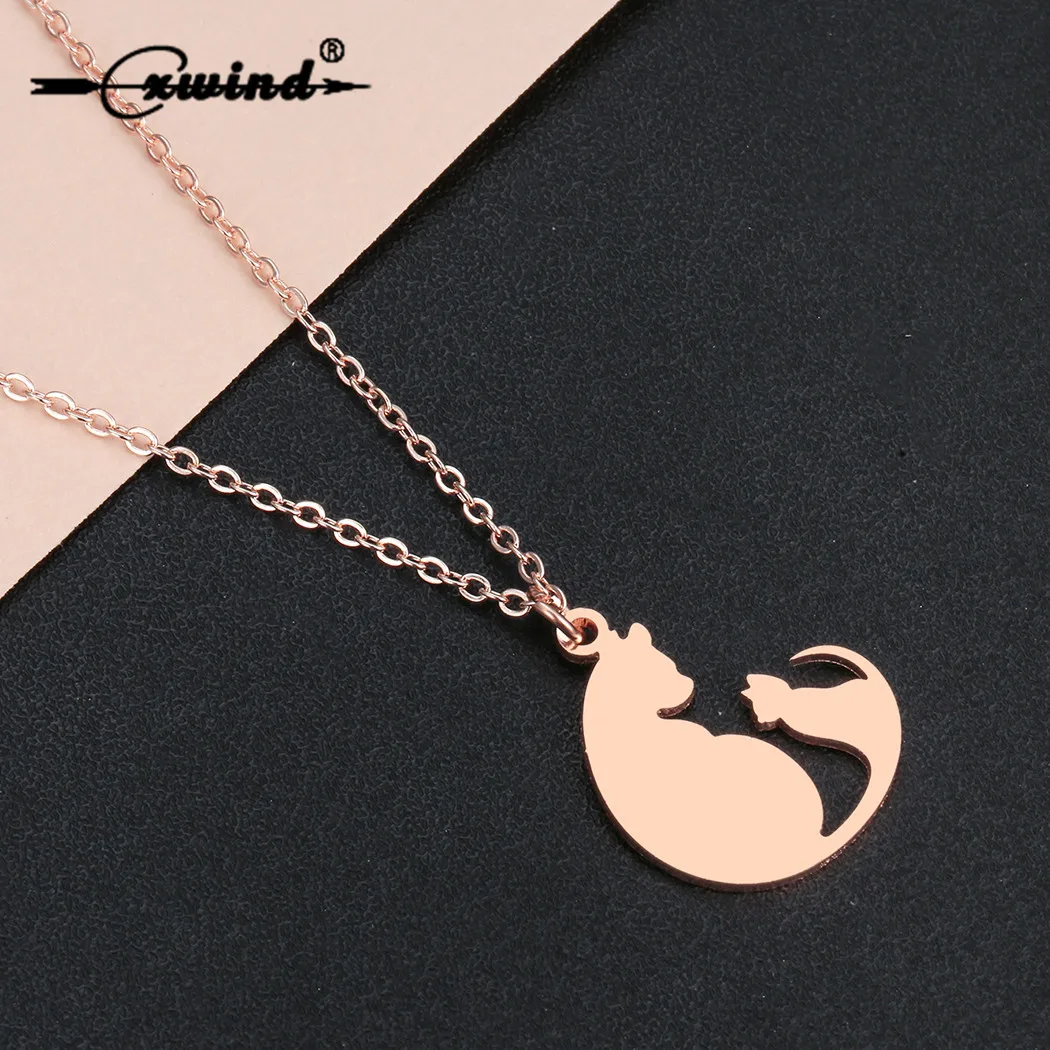 Парное ожерелье Cxwind из нержавеющей стали для женщин, ожерелье с подвеской в виде животного, мамы, ребенка, кота, подарок для влюбленных, ювелирные изделия для мам и детей