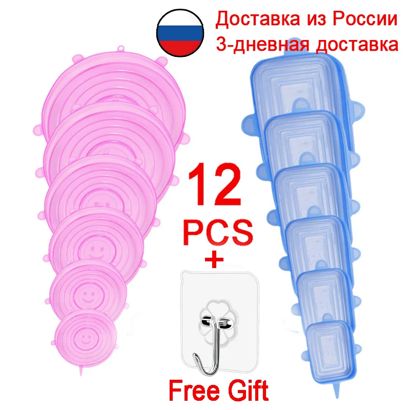 Крышки силиконовые универсальные, многоразовые крышки растягивающиеся, 12 шт.