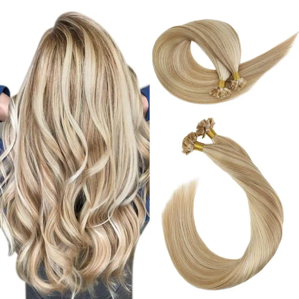 Волосы Ugeat для наращивания с плоским кончиком, блонд, волосы Remy 14-24 дюйма, Натуральные Прямые кератиновые волосы для наращивания, 1 г1 с, 50 гв упаковке