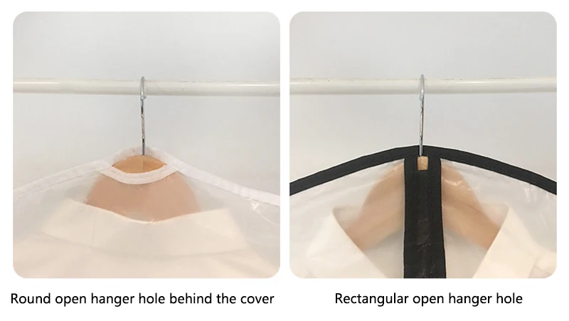 Круглое отверстие, отверстие для вешалки в задней части пылезащитного чехла (слева изображение), Или прямоугольное отверстие, отверстие для вешалки в передней части пылезащитного чехла (справа на рисунке)
