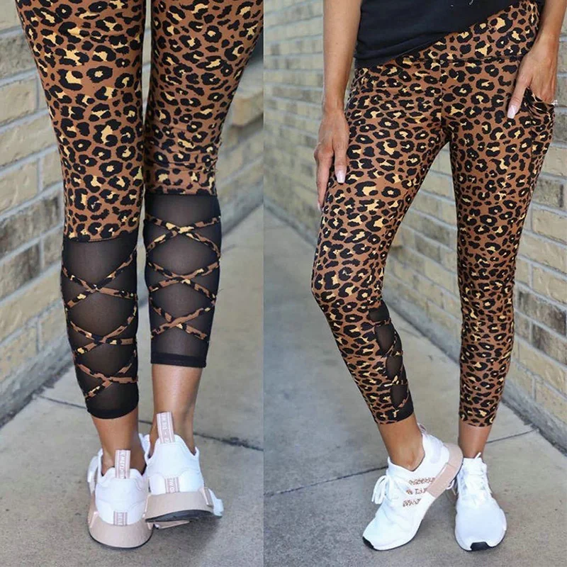 Женские брюки с высокой талией 2020, женские облегающие брюки с леопардовой сеткой, сексуальные тренировочные брюки, джоггеры