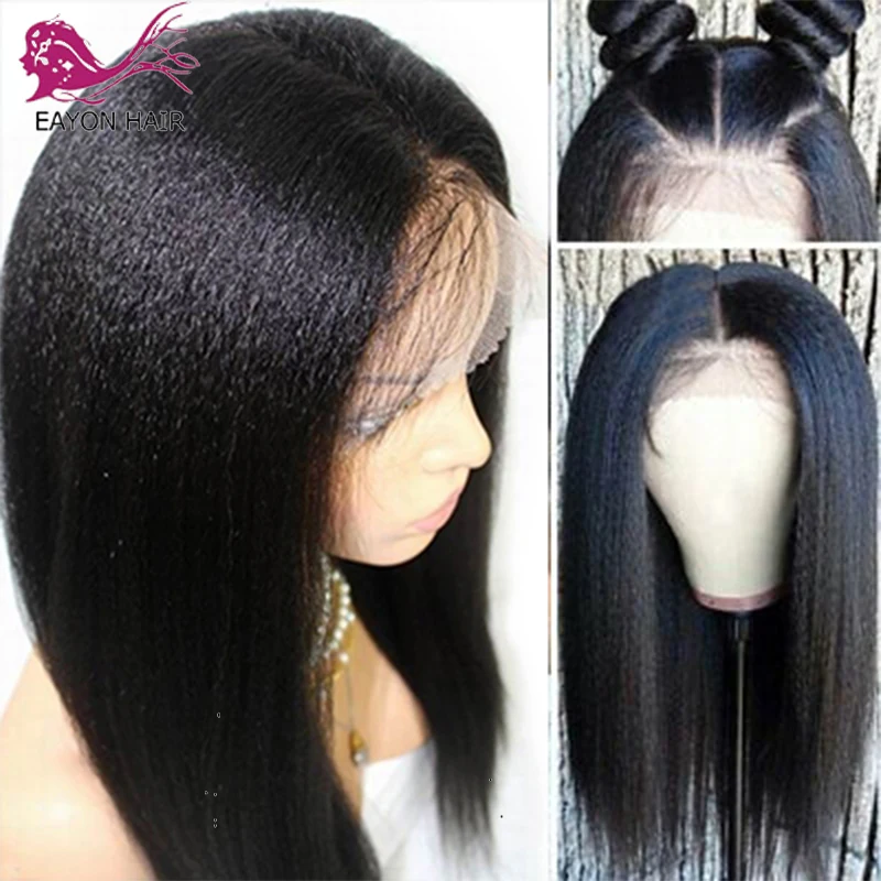 Парик EAYON Yaki, прямой, с детскими волосами, без клея, из натуральных волос, бразильский, без повреждений, предварительно выщипанные волосы