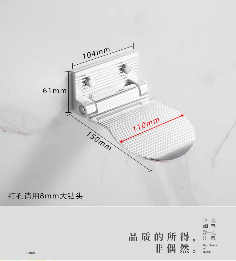 Душ скамеечка для ног из алюминиевого сплава черныйСеребряный насте...