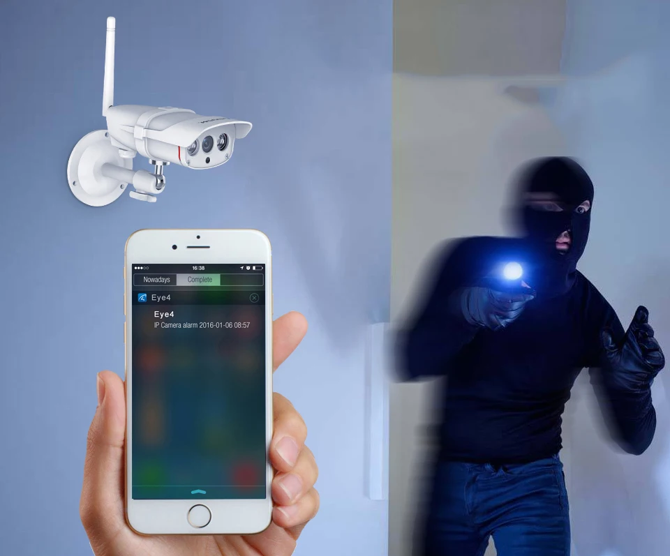 Когда движение захватывается в области обнаружения, камера начнет снимок, запись и отправит push-уведомление на подключенный телефон.
