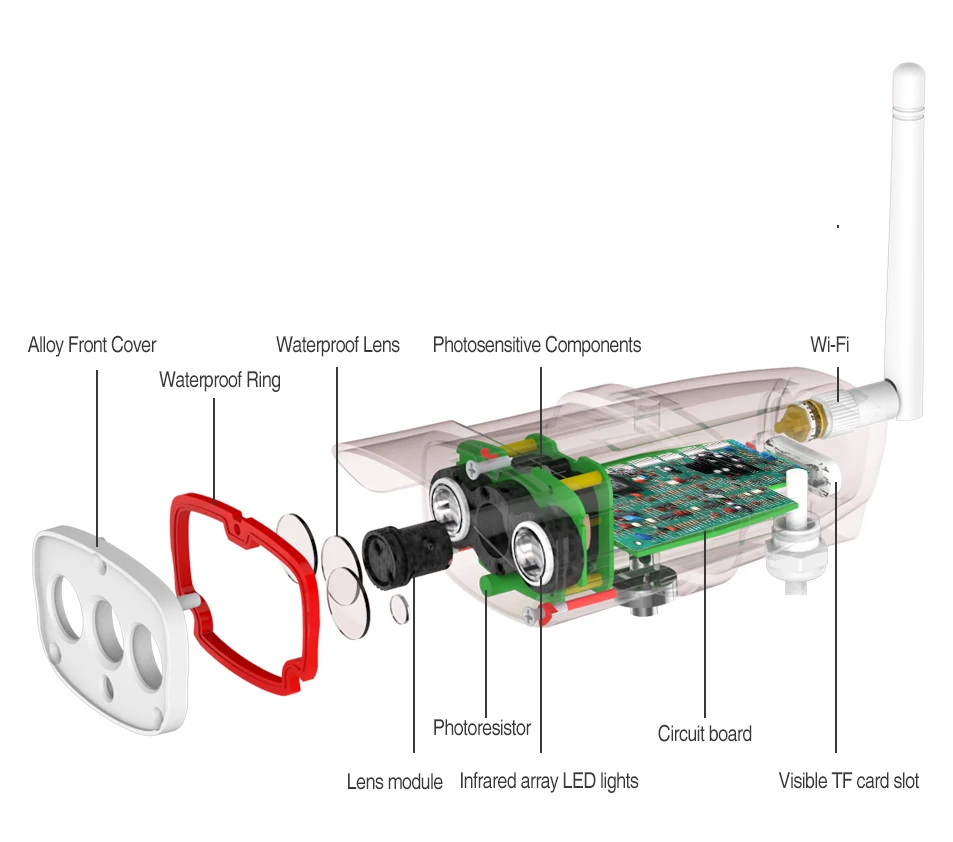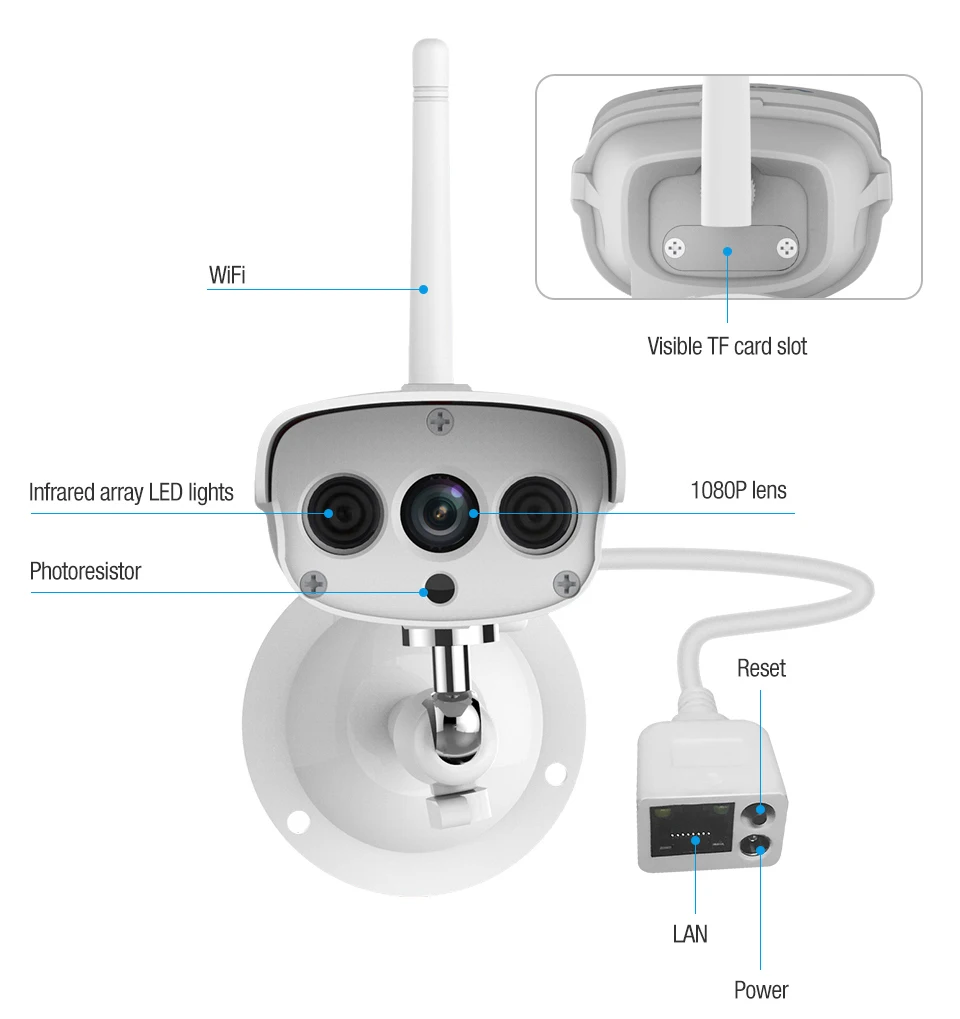 Инфракрасное ночное видение, может четко видеть ночьюДва мощных инфракрасных фонаря делают ночное наблюдение таким же, как день.