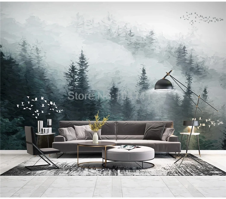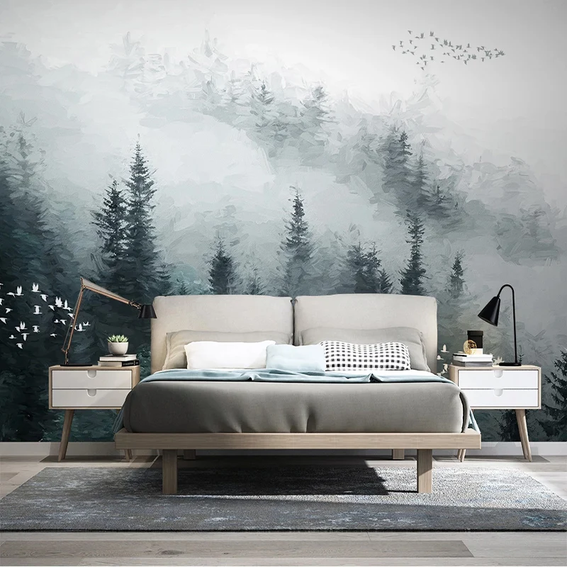 Фотообои на заказ, в китайском стиле, с изображением облаков, соснового леса, летающих птиц, картины маслом, Настенные обои для гостиной, телевизора, дивана, домашнего декора