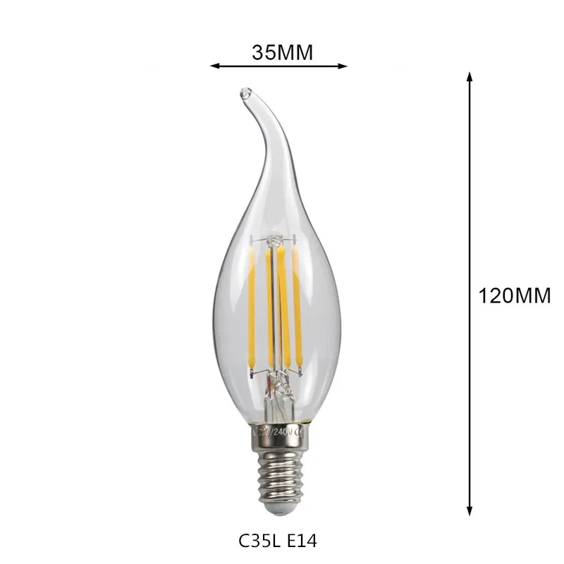 Светодиодная лампа Эдисона E27E14, винтажная лампа 220 В 2 Вт 4 Вт 6 Вт, прозрачная стеклянная лампа, энергосберегающая, безопасная лампа G45 C35 C35L