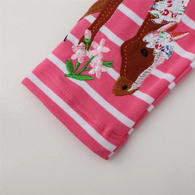 Леггинсы для девочек в полоску, с единорогом, новинка на весну и лето, детские леггинсы, штаны для девочек с мультяшными животными, хлопковые брюки