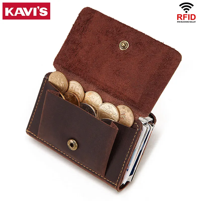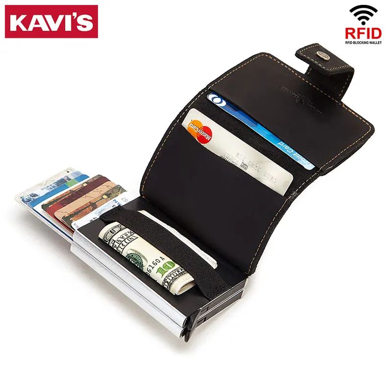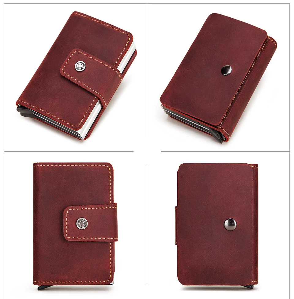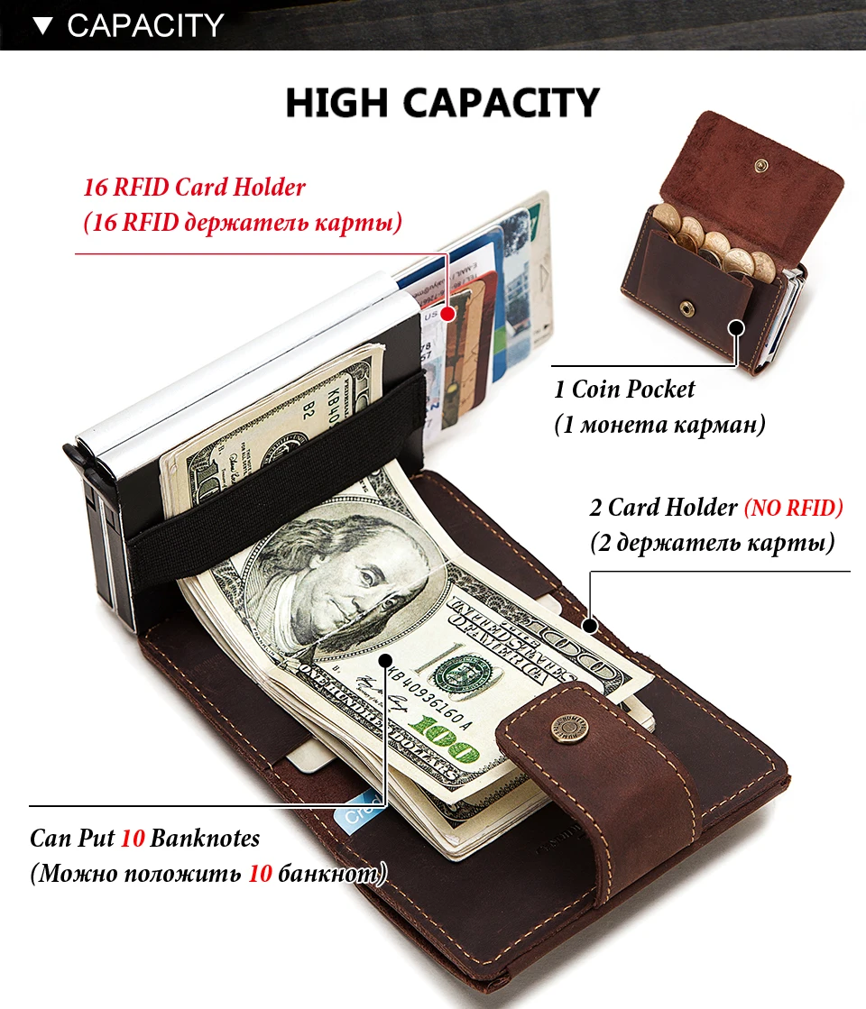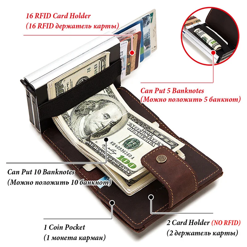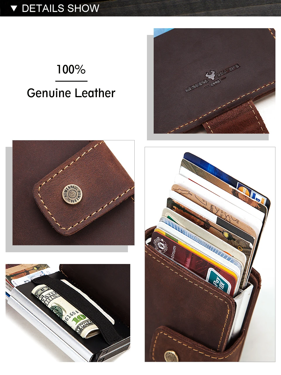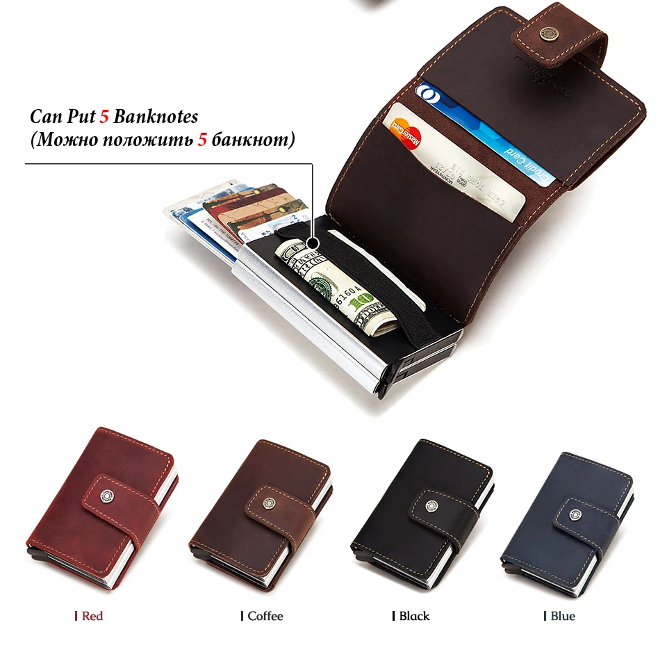 Мужской мини-кошелек из натуральной кожи, с отделением для монет, из алюминиевого сплава