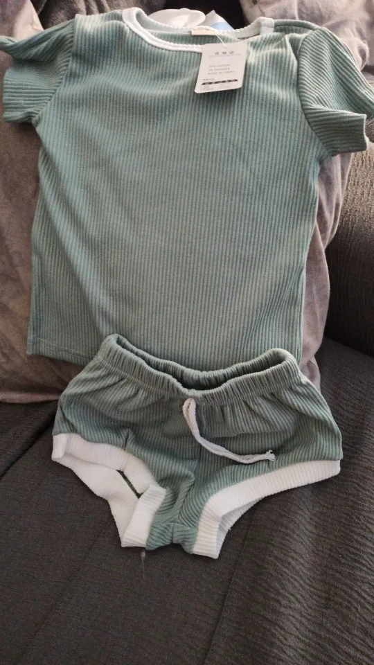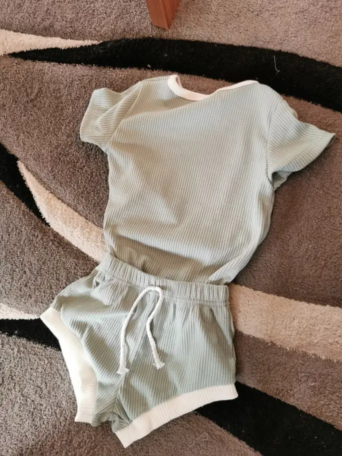 Футболка и шорты для мальчиков и девочек, трикотажные, в рубчик