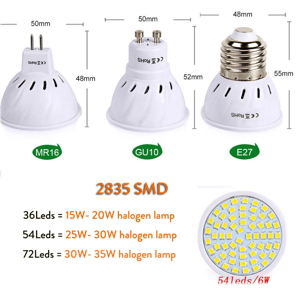 GU10 MR16 E27 Светодиодный прожектор, лампа 2835 SMD 110 В 220 В, сменная 35 Вт галогенная лампа, светодиодный прожектор высокой мощности для дома и офиса