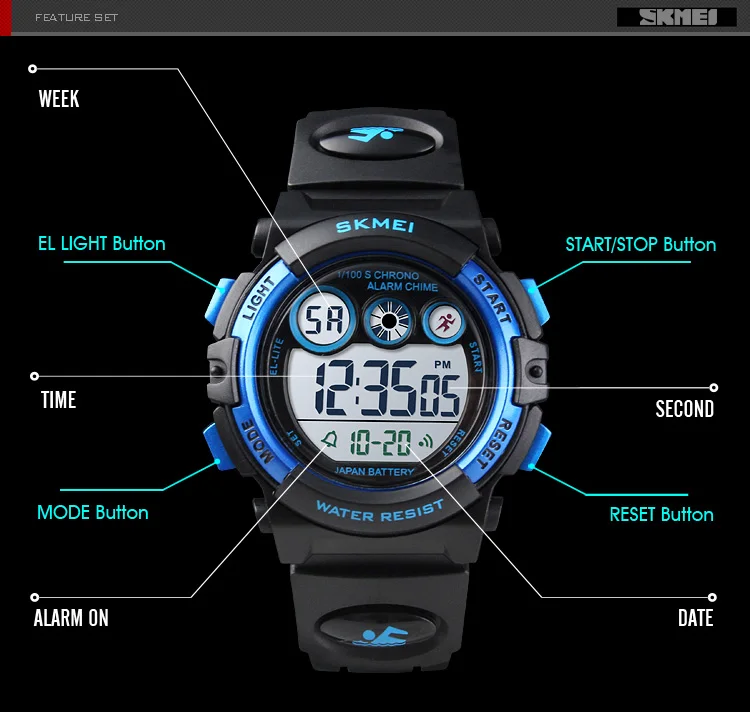 SKMEI детские спортивные часы водонепроницаемые светодиодные цифров...