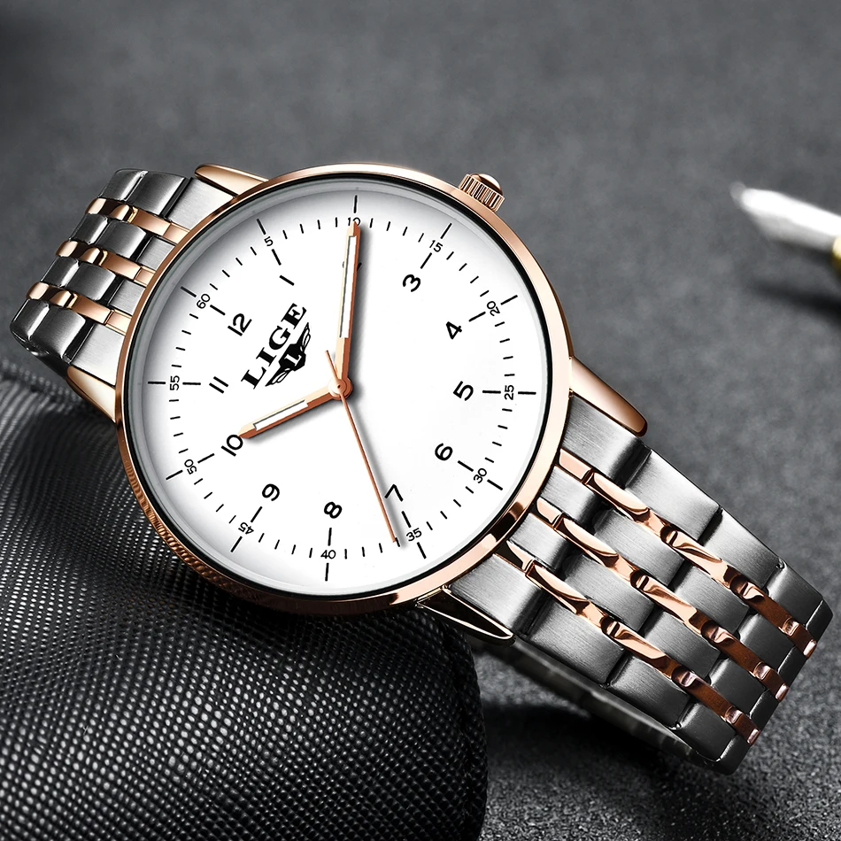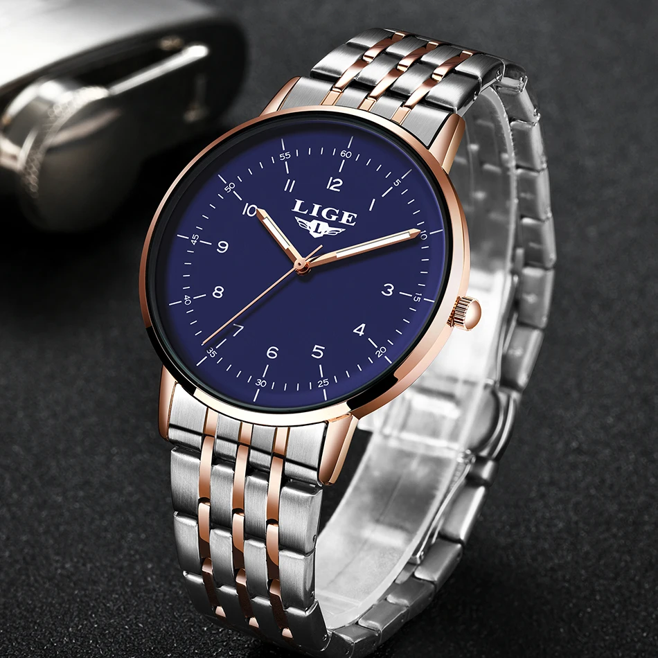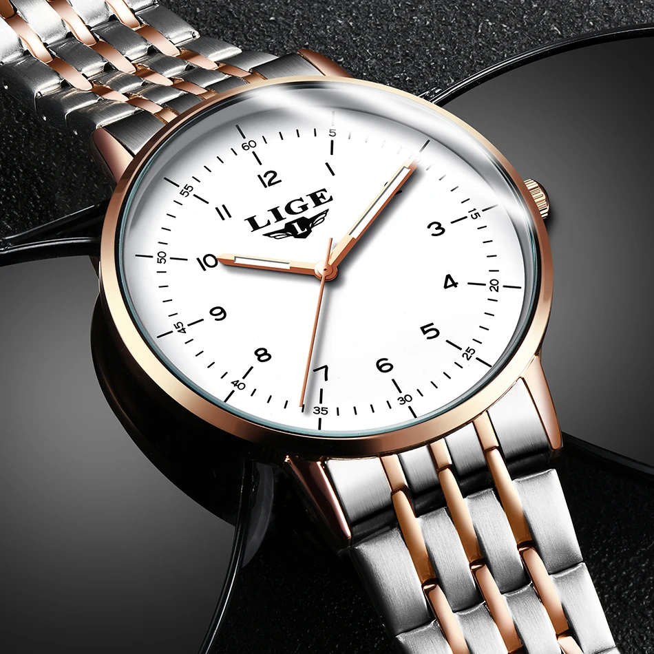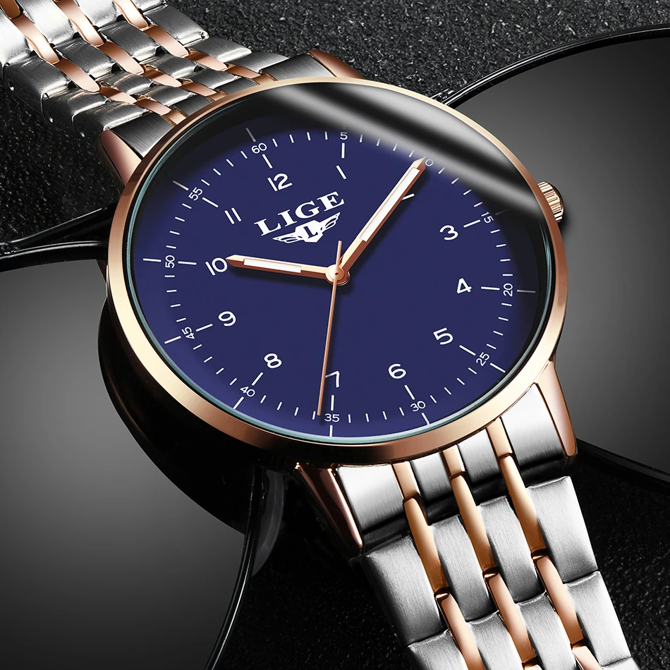 Часы наручные LIGE женские кварцевые из нержавеющей стали, роскошны...