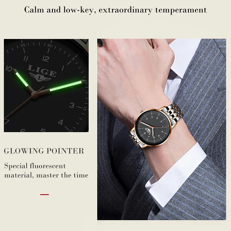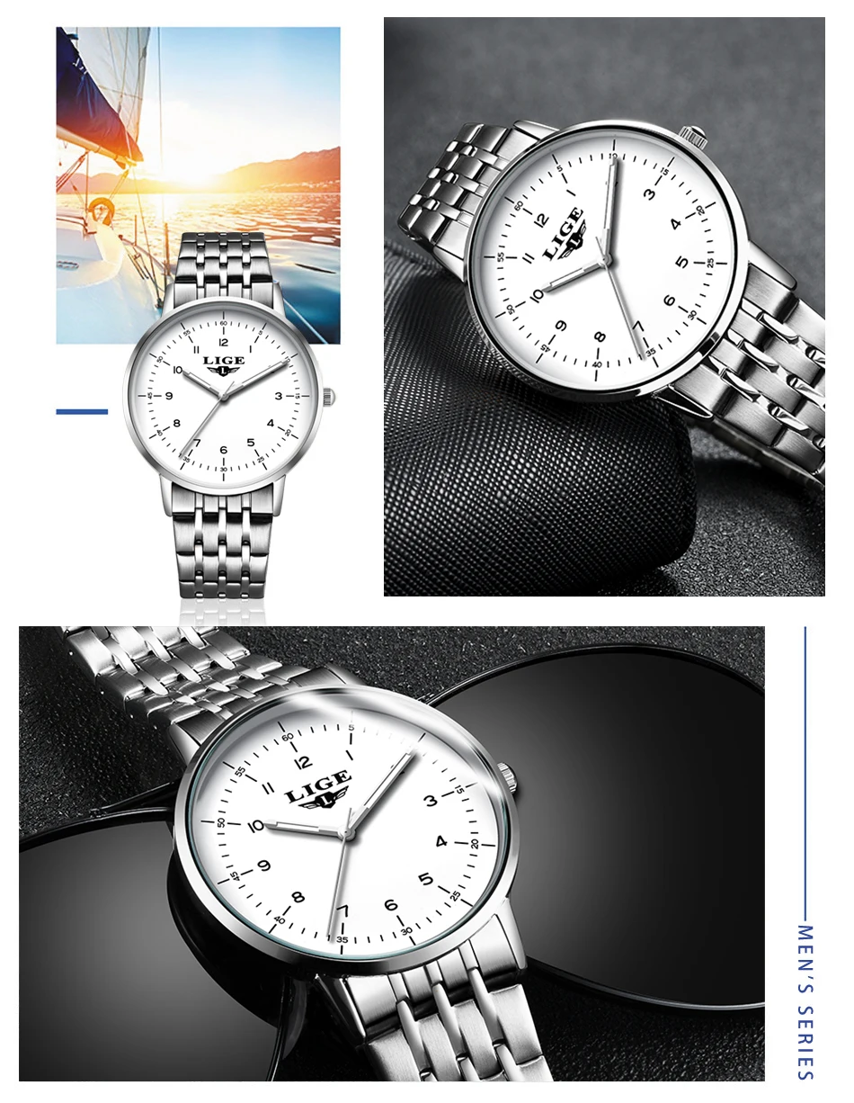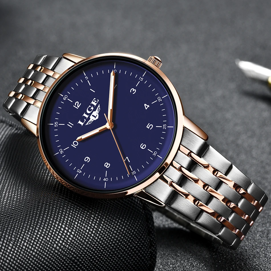 Мужские часы LIGE, водонепроницаемые кварцевые деловые мужские часы, роскошные часы ведущего бренда, повседневные военные спортивные часы, мужские часы + подарок