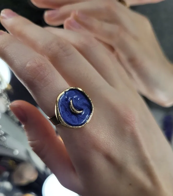 Кольцо HUANZHI женское, эмалированное, круглое, металлическое, 2020, в виде звезды луны сердца