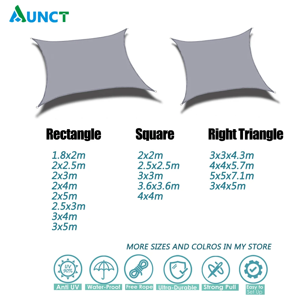 Квадратная/прямоугольная форма включает в себя:1 * теневой парус, 4 * веревки,